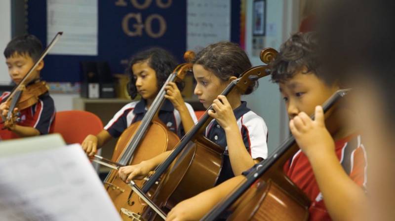 在培养孩子音乐细胞方面,学校也是从娃娃抓起。 入学的孩子从18个月大的时候就开始有铃木小提琴课程,5岁开始学习大提琴,从小培养孩子对艺术的感知。