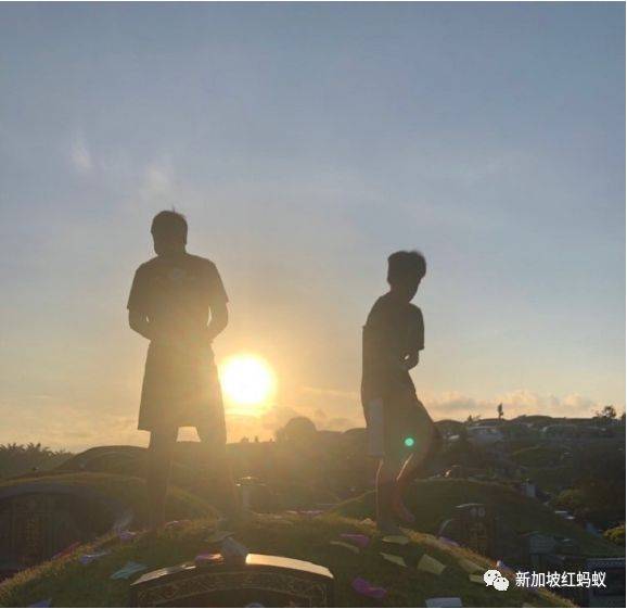 早到的清明节。我们和太阳一样早期到爸爸的新坟拜祭。在马国封关前完美表达我们对他的思念。(作者提供)