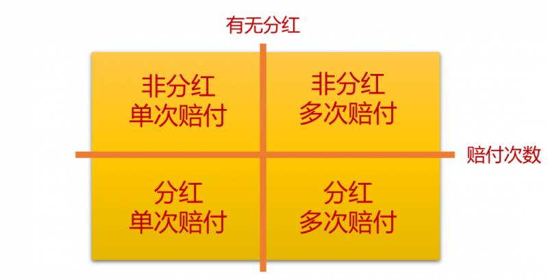 重疾险的分类方法不一,笔者在此仅从有无分红和重疾赔付次数这两个维度,来对新加坡的重疾险做一个简单的分类。因此可以得到4大类:非分红单次赔付重疾险、非分红多次赔付重疾险、分红单次赔付重疾险、分红多次赔付重疾险。