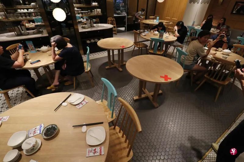 莆田餐馆在nex购物商场的店面,昨日起也推行安全距离措施,让访客隔着一张桌子的距离用餐。(陈来福摄)食肆、零售店和娱乐场所等,从今天起也须确保公众保持一米距离。业者可在地板上标记出顾客排队时应保持的距离,固定椅子上也可作出记号,提醒不相识的顾客分开坐。违例业者可被警告、罚款或吊销执照等。与颜金勇共同领导工作小组的国家发展部长兼财政部第二部长黄循财指出,对已受疫情影响的餐饮业者而言,这些措施有如雪上加霜,但为了保护国人,当局必须这么做。餐饮店的座位会因此减少,但黄循财鼓励国人打包食物回家享用美食,以继续支持本地小贩和餐馆等。至于工作场所,工作小组建议雇主应设法让雇员在家办公,并尽可能通过视讯开会。若雇员因工作性质无法在家办公,雇主应该错开雇员的上下班时间,把上下班时间分为三个一小时的时段,让雇员从中选择,同时尽量避开繁忙时段。每个时间段不应有超过一半的员工同时报到,雇员工作时也应保持一米距离。黄循财解释,公共运输较难实行保持安全距离的措施,因此错开工作时间是方法之一。