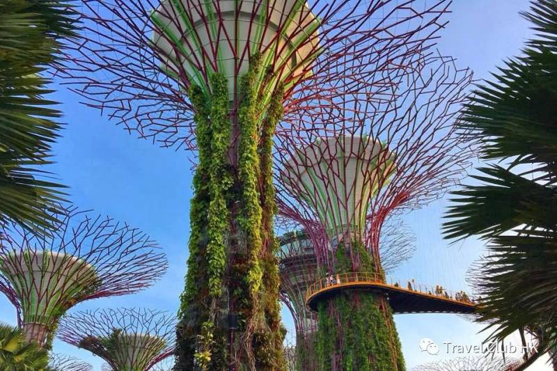 花园还有令人惊叹的擎天大树(如图),外观有些类似于阿凡达电影里巨型树,浪漫爱情喜剧中《摘金奇缘》精心制作的婚宴现场也是在这里拍摄。每天晚上7:45和8:45这里都会有灯光秀,每次约10分钟,届时五光十色的天空树会闪闪发光,打造出五光十色的奇幻美景,还可从树梢高处欣赏花园和滨海湾的壮丽景色。
