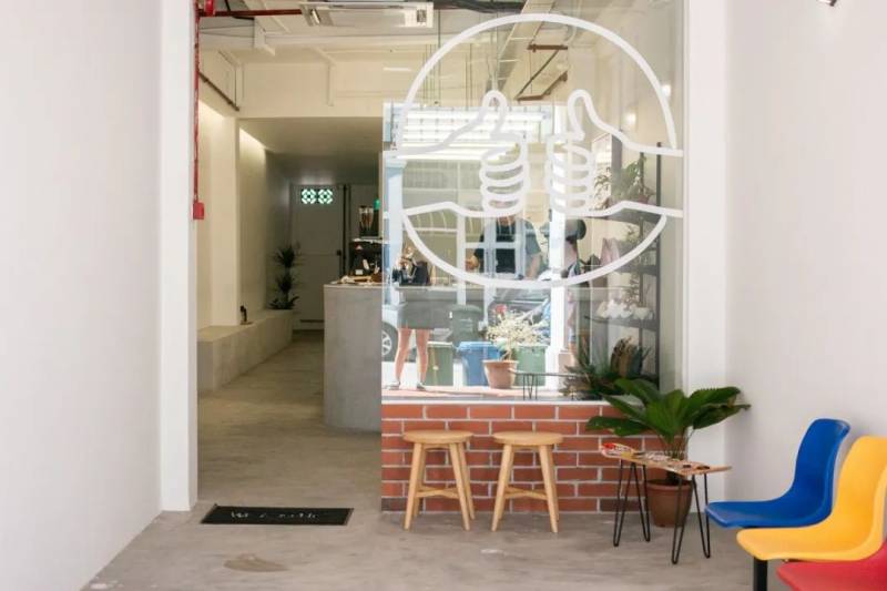 位于Bugis,靠近哈芝巷新开了一间极简工业风的cafe,Double Up Coffee,一起来竖起大拇指吧。店的外面,简单的白墙,三把红、黄、蓝椅子,形成了鲜明的颜色对比。店内,灰色的墙,浅色的木色椅子。