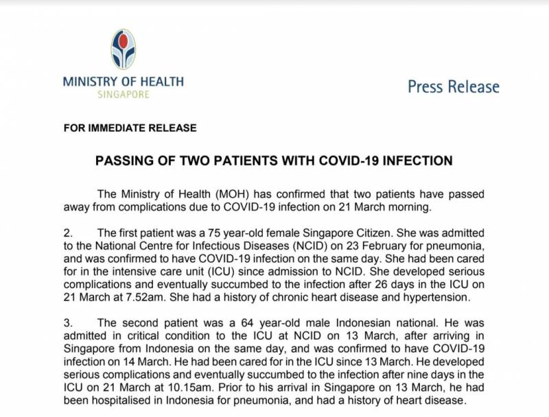 新加坡卫生部长颜金勇公布死亡病例
