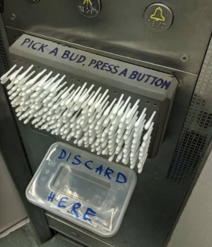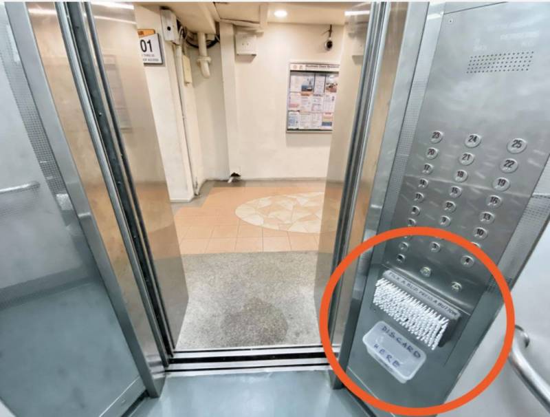 电梯内放口罩、消毒水
