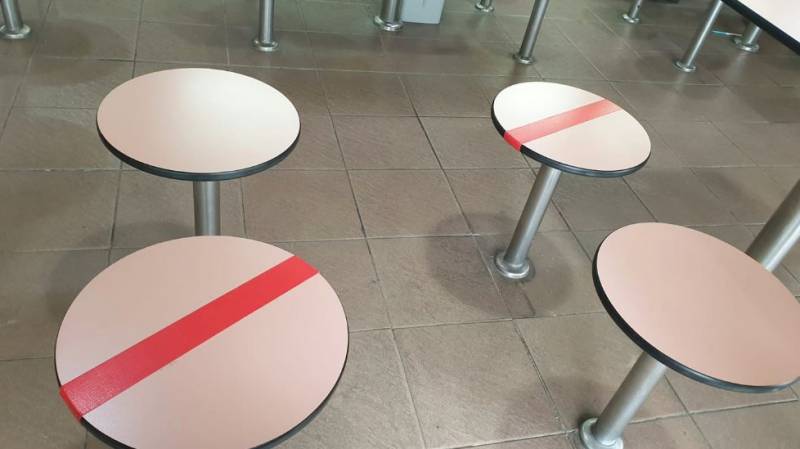 Sue Goh拍摄荷兰村小熟食中心 业者可在地板上标记顾客排队时该站在哪,或是在椅子上做标记,提醒大家不要有太多的接触。没有遵守条规的业者将会接到警告、罚款甚至是吊销执照等。
