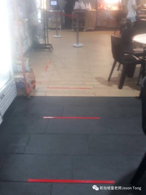 于此同时,新加坡也在公共场所进行了安排,强制要求顾客之间保持一米的社交距离!(如图示)