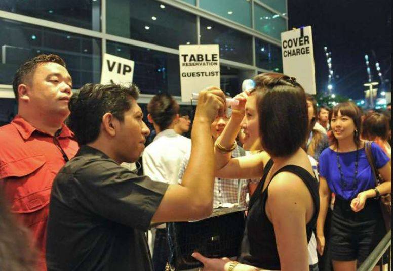 进入新加坡的人进行体温检测