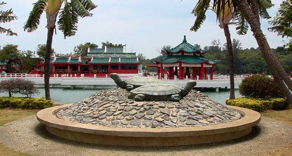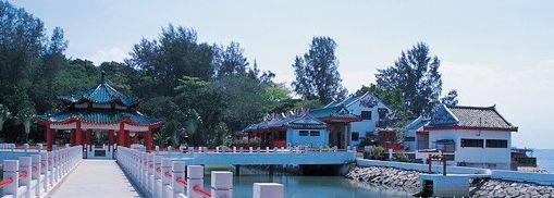 (位于龟屿的庙宇)龟屿又称Pulau Tembakul,即马来文“山顶岛”的意思。原是2片狭小的礁岩层,经过人工填海,现在已发展成为度假消闲的岛屿。龟屿还保留者华人和马来人的庙宇让香客来祈福敬香。