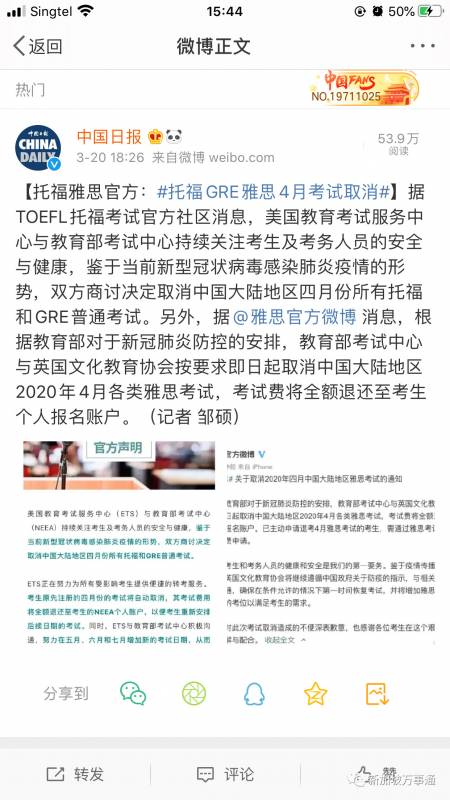 在中国高考是否延期登上热搜后,雅思考试官方宣布取消了4月份的中国大陆考试,考试费用将全额退款。