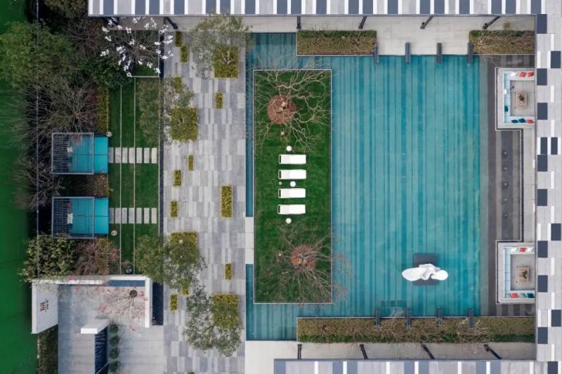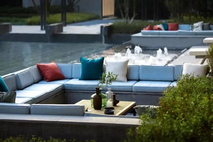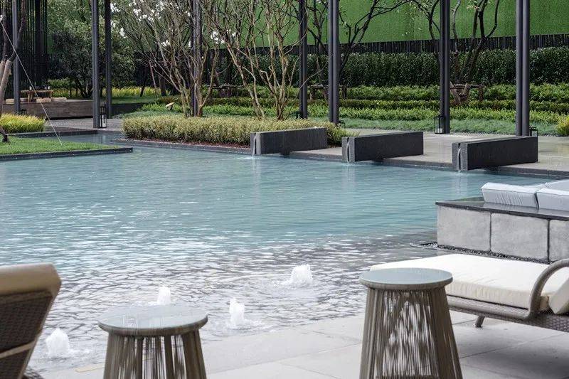 水流尽处,是璞阅借鉴新加坡式度假风格,参考国际高级酒店的手法打造的水畔客厅: