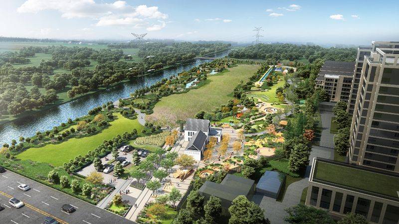 要模仿新加坡,这第一大环境优势,就要难倒很多项目。 这一点,东原在拿地之初就考虑到了:首先,优先选择城市中具有良好环境条件的项目,同时又不能离城市繁华太远,才能让住户兼顾生活、工作和度假的平衡。东原璞阅项目位于杭州湾北岸核心区、南上海中心城市奉贤,与上海2035规划的市区南闵行滨江板块仅一江之隔。既具有奉贤江、海、湖围绕的自然环境,又兼顾了向老闵行地区的通勤距离。项目不仅距离“上海之鱼”、花米庄行景区不远,还有一个优越的地理优势:无缝衔接4.3万平米的庄行社区花园。这个花园位于奉贤庄行片区规划的九宫田字绿廊与生态景观带交叉处,依托于城市绿道系统,生态基地天然良好。公园还自带了水质良好的南沙港河道水资源。