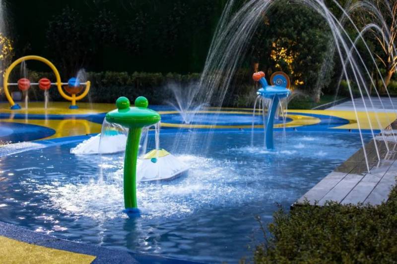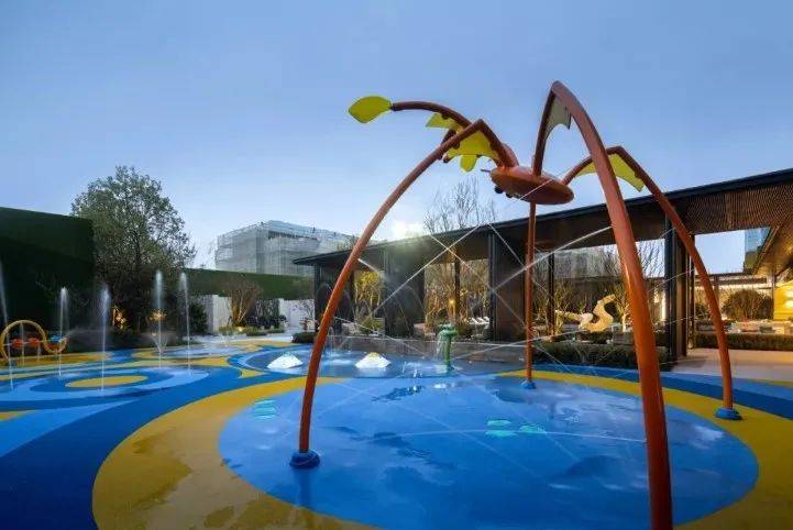 归家连廊一侧,东原还打造了一个约200㎡的儿童嬉水乐园,引进加拿大进口Vortex设备,景观水深不超过30厘米,器械都是倒圆角边缘,水质也是饮用水,让儿童既能自由自在地与水亲密接触,同时也确保安全和健康。做这样的嬉水乐园,也是东原在童梦童享体系基础上做的最新尝试: