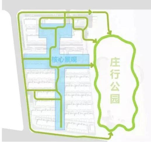 庄行公园的景观通过社区南北区间的中轴花园,无缝引入社区内部。