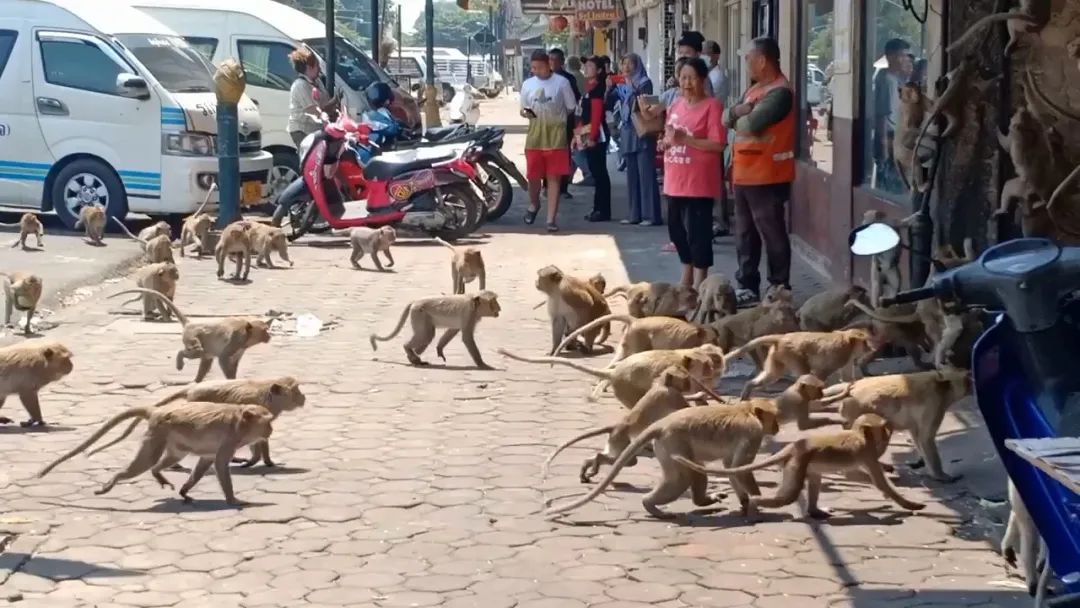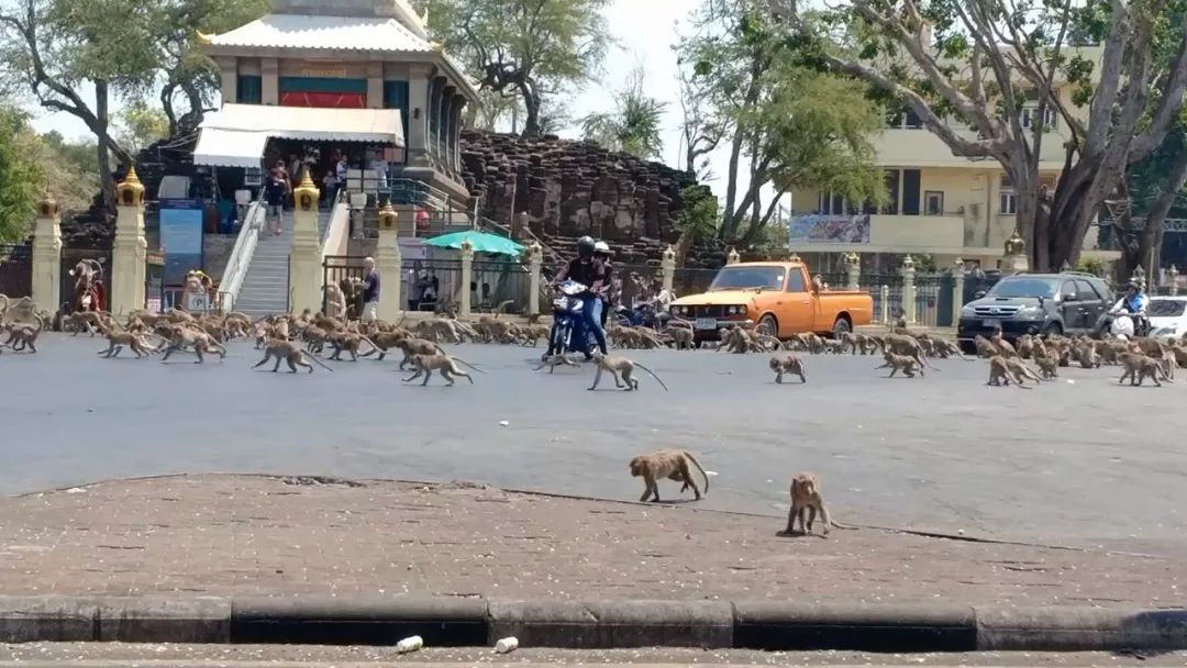 在泰国,上演了城中无人类,猴子称大王的戏剧一幕。