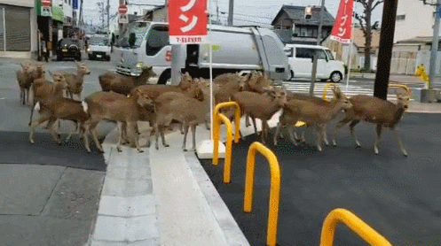 “疯狂动物城”在日本奈良,野生陆群出现在少有行人的街道。