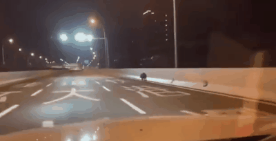 武汉长江大桥上,一只野猪闯了进来,网友放慢车速,为它照亮路~