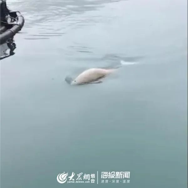 山东长岛综合试验区一只野生白江豚,久违地出现在了大钦岛乡南村海域。