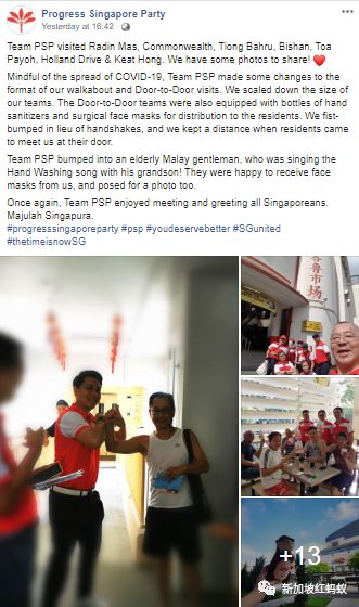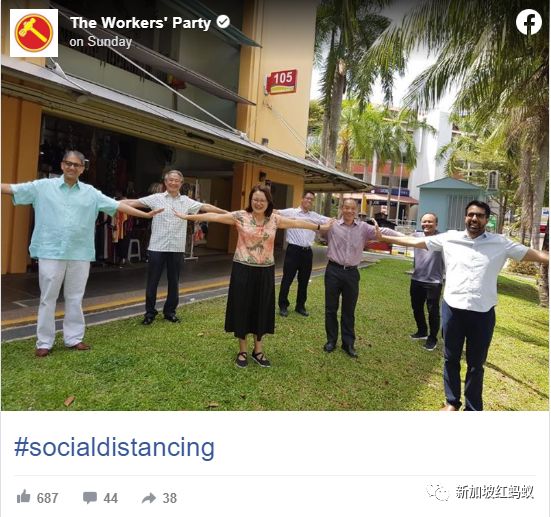 本地规模最大的反对党——工人党昨天走访了阿裕尼选区后,在面簿上贴出一张让人眼前一亮的照片,附上#社交距离的标签。