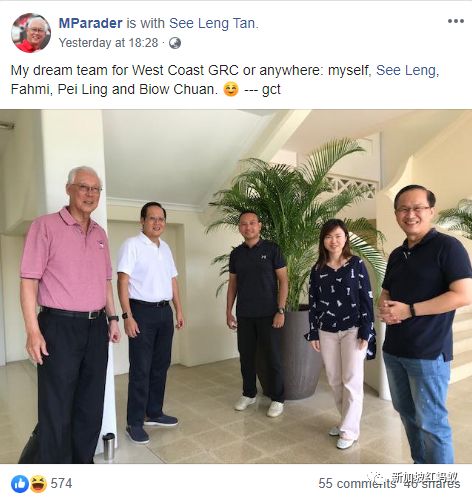 荣誉国务资政吴作栋(左一)在面簿上写道:不论到西海岸集选区还是任何选区,这都是我心中的梦幻团队:我、陈诗龙、法米、陈佩玲和林谋泉。(吴作栋面簿)