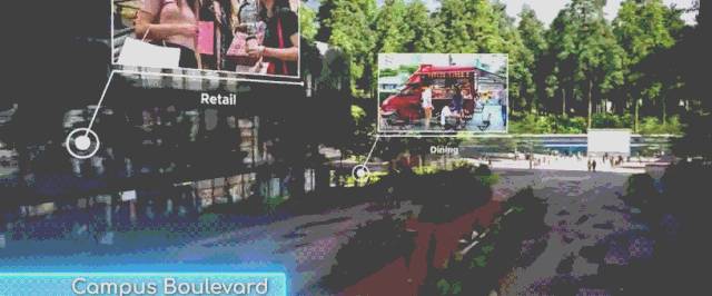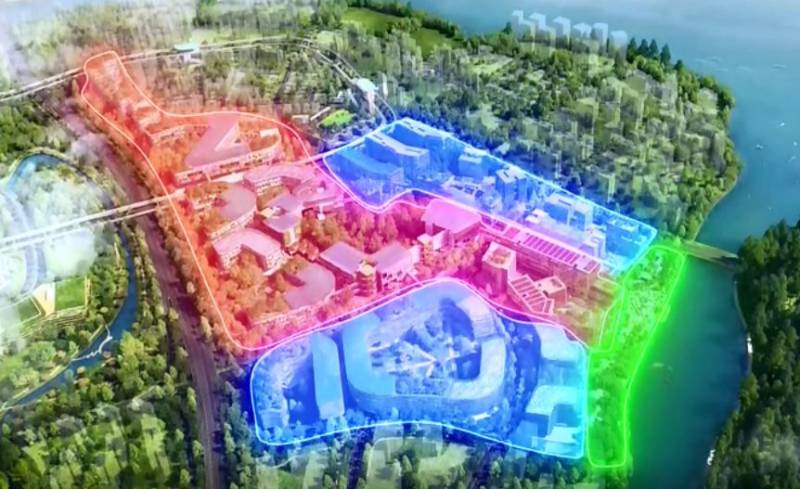 下图中,红色区域是研究中心,蓝色区域为数码园区,主要是由Office park构成。