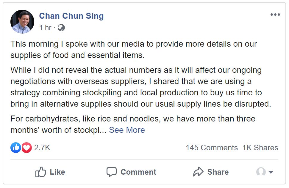 而且,新加坡90%的食物靠进口