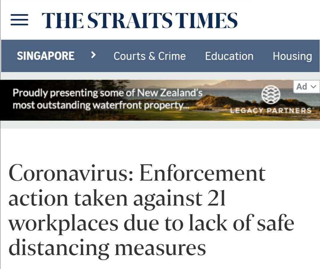 在新加坡,违反防疫有关规定