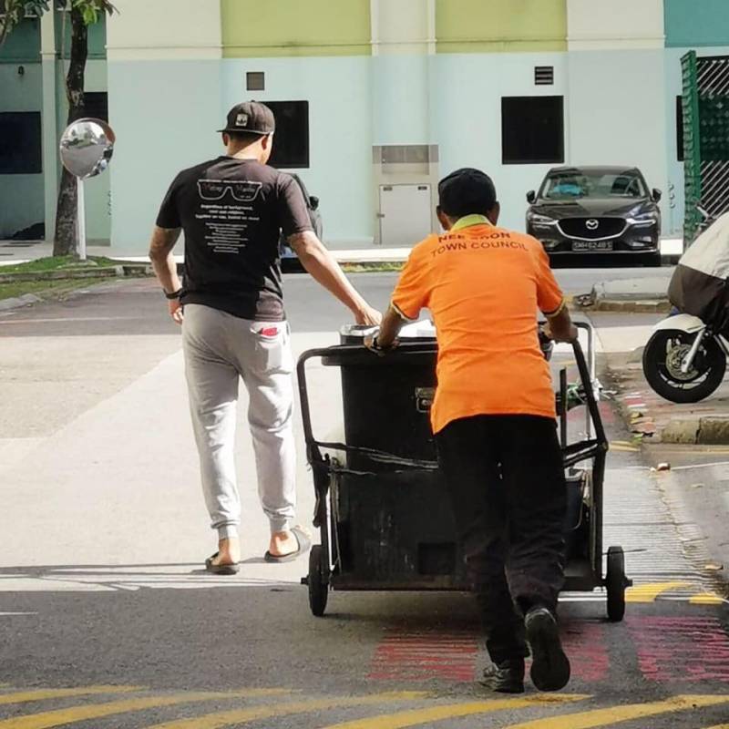 面子书也流传沙里祖马安在上个星期,到组屋区协助父亲捡拾垃圾以及手推垃圾车的照片,在网上广为流传,获得嘉许。