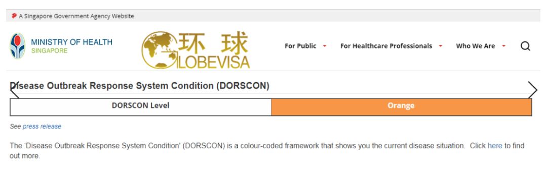 DORSCON系统是新加坡在2003年SARS之后创建的(SARS期间也为橙色级别,表示该疾病很严重且容易传播,但仍然可以控制。) 这套系统修改过多次,目前已经涵盖了边境控制与公共卫生的各个方面。3. 2020年1月31日,新加坡政府发布了一系列限制入境措施。