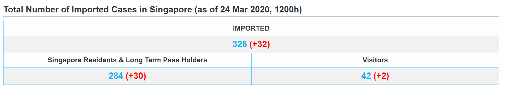 截至2020年3月24日下午12点,卫生部已确认并验证了新加坡32例进口COVID-19感染病例和17例本地感染COVID-19病例。