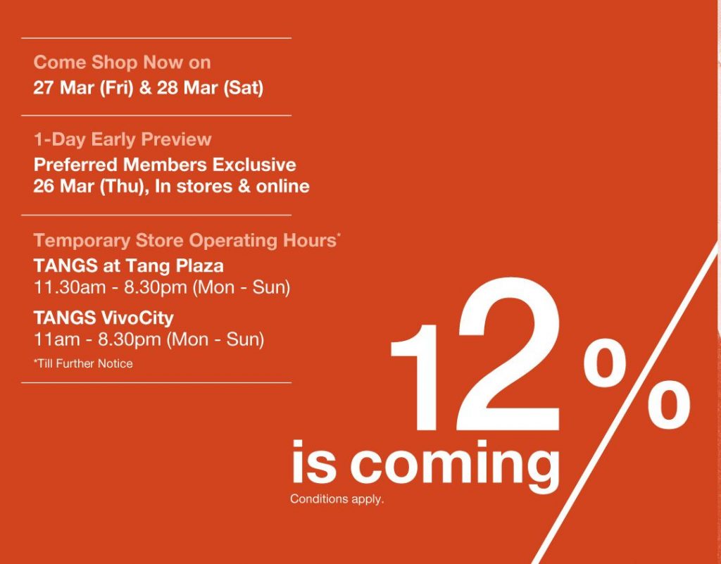 皇后团队将在TANG PLAZA门店发放10新币皇后粉专属Voucher