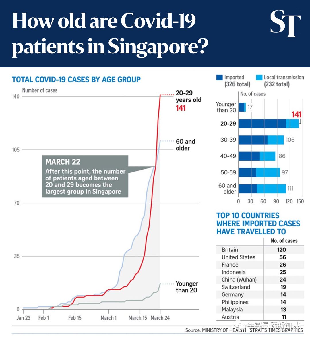 但是,通过对新加坡目前558例确诊案例分析,其中有141例是20-29之间的青年,比60岁及以上患者的111例还多出30例,20岁以下的儿童共有17例。