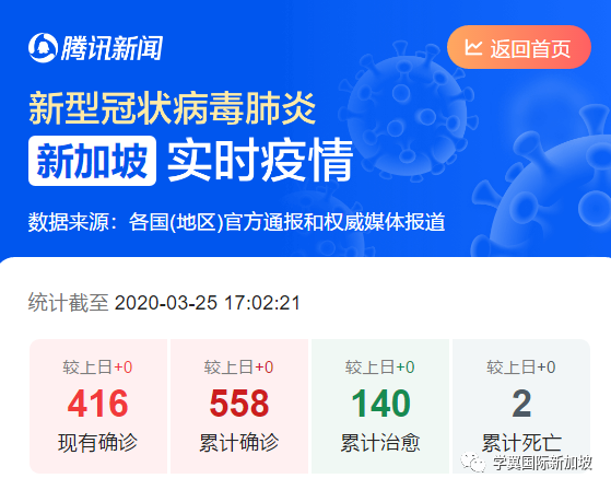 截止今天(3月25日)早上11时,新加坡累计确诊558例,累计治愈140例,累计死亡2例,现确诊2例。