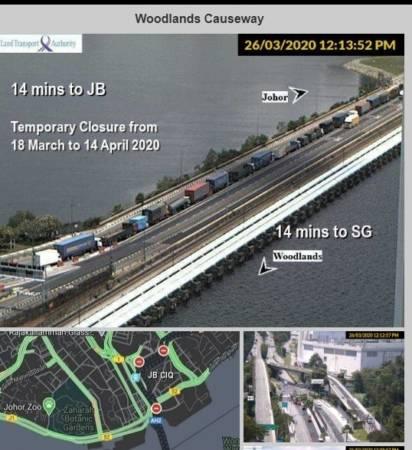 柔佛长堤从新山朝新加坡方向,空无一车,从新加坡朝新山方向,罗厘及客货车则排起了长龙。