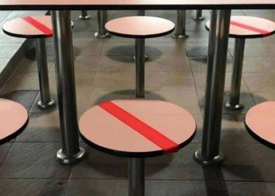 “硬核”防疫措施涵盖方方面面。故意坐在为保持安全距离,而标有禁止坐下标志的座椅上。
