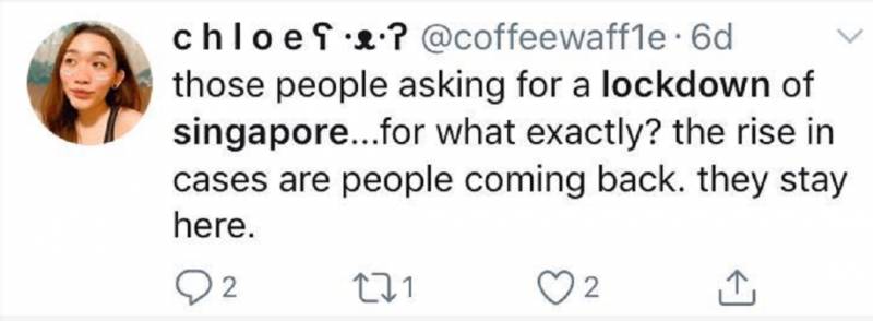 “那些想要新加坡封国的到底是想封什么?增长的病例都是外边回来的,他们本来就住在这里。”
