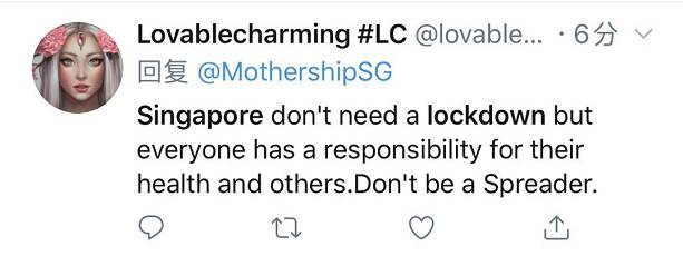“新加坡不需要封国,但每个人都要为自己和别人的健康负责。不要变成传播者。”