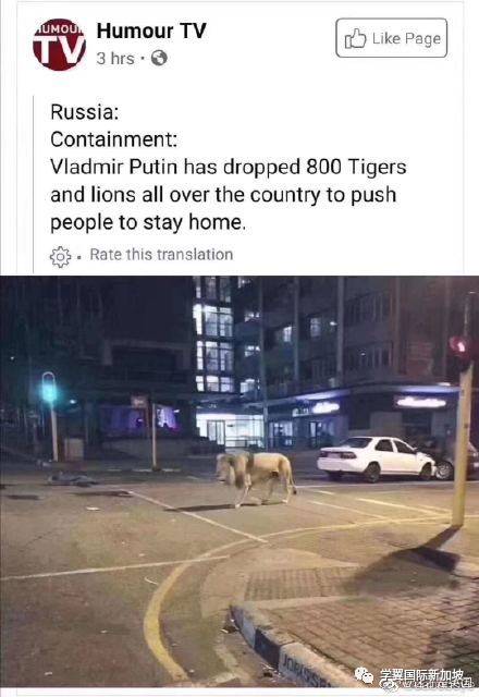 前几日,网络疯传的俄罗斯政府在城市中放了800头狮子、老虎以保证民众都在家呆着,没人出门。