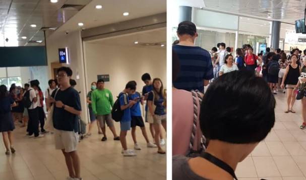 在宏茂桥购物城(AMK Hub)排队的民众有大约五六十人。