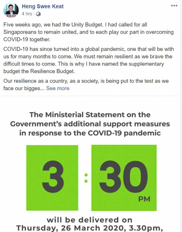 (照片来源:NDPCentralsg 脸书)他表示减薪目的是让新加坡人民知道,政府官员与国人同在,随着局势的恶化,危机时期可以看到一个国家的“本色”。