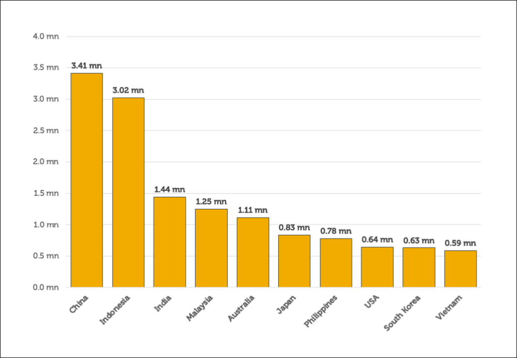 其中有 342万 是来自中国的旅客。中国游客占总游客的18.4%。2018年中国籍旅客在本地消费额达到 32亿 新币,位居所有国家排名的榜首。其中美⻝的消费金额达到 9亿2700万 新币。