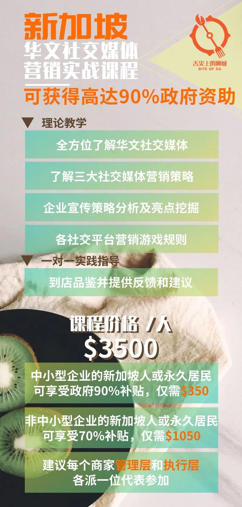 针对新加坡的餐饮企业,2020社交媒体营销实战课程启动,政府资助90%费用助力走出困境