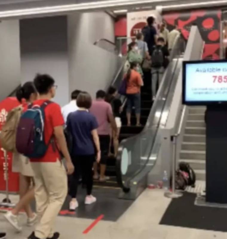 有位署名JJ的网民分享他刚刚拍到的视频,在视频中,大家可以很明显的看到在位于实龙岗的NEX购物商场中一座电动扶梯出现人龙,大家都等著搭上电动扶梯。