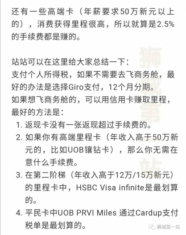 这里站站比较一下各个支付渠道的优劣: 比的当然是手续费和刷卡奖励,按照支付每1000新元所得税计算,这里只列出收益为正的信用卡。