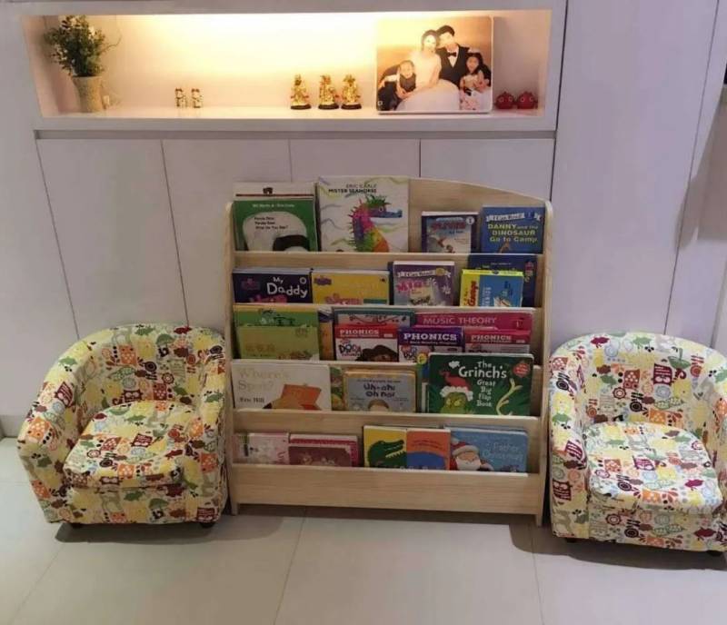 大一点的孩子可以买小书架,容易抽取,而且也不容易倒,不用担心危险。