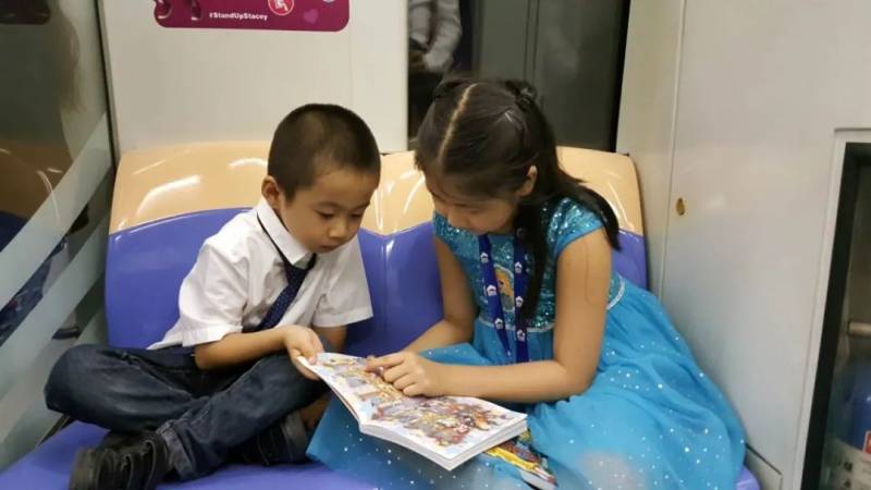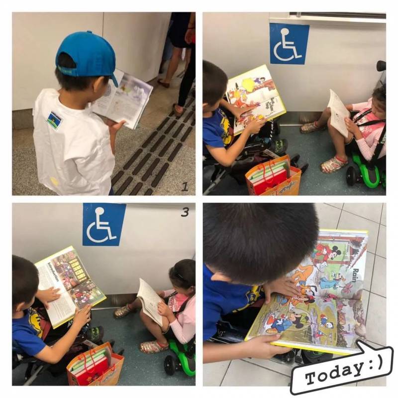 接孩子放学的路上,爸爸妈妈也会带书给他们
