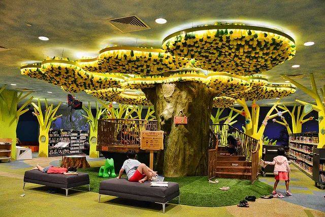 新加坡图书馆的儿童区,以美吸引孩子读书 给孩子制造读书的氛围,多给他接触书的机会,这也是让孩子爱上阅读,爱上学习的小心机。 不要怕孩子拉乱,书就放得很高,随手能拿到才是开始读书的好办法。看完就放回的好习惯可以慢慢培养。