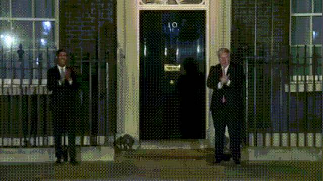 英国首相鲍里斯和财相里希·苏纳克也带头走出了唐宁街10号,加入了鼓掌的队伍......