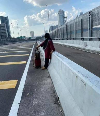 (新山30日讯)行动管制令期间,马新两地没有巴士通行,一名住在新加坡的妇女一步一脚印,忍痛步行到新加坡关卡,引起网民热议。