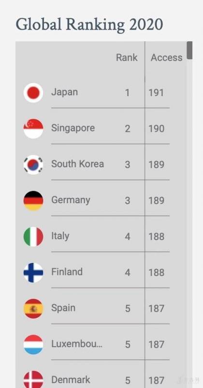新加坡护照可以在全球189个国家和地区免签,被英国顾问公司Henley & Partners评为和日本并列的2019全球最好用、通行自由度最高的护照。