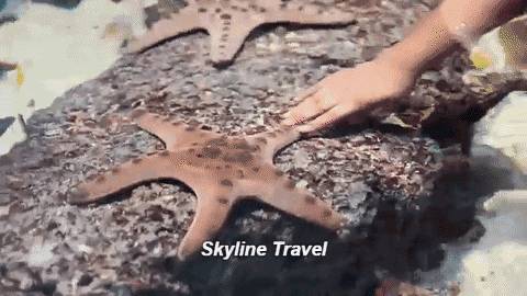 通过触摸海洋生物来更加了解它们,还可以用放大镜近距离观察。